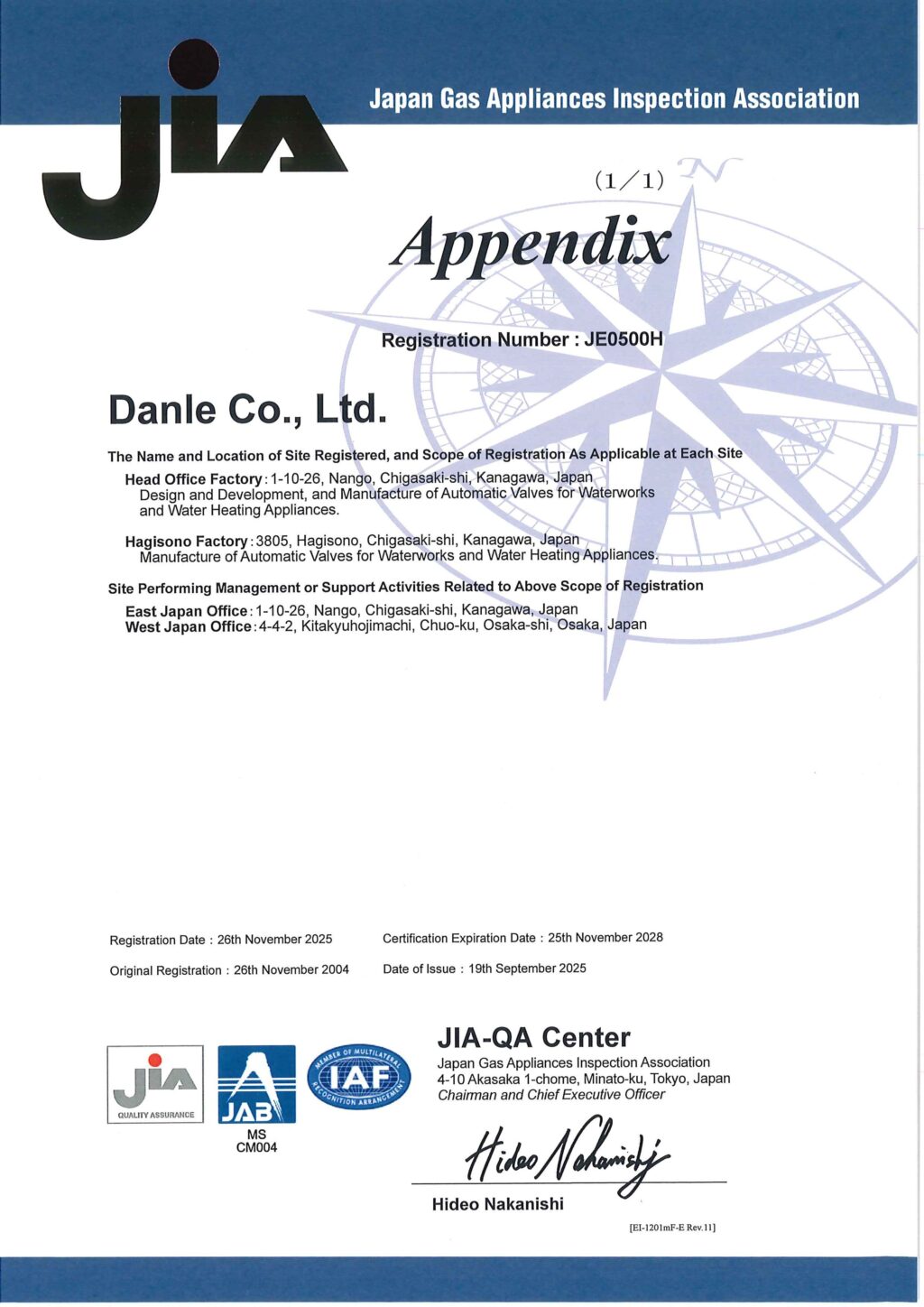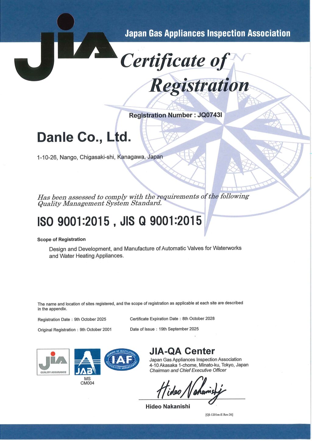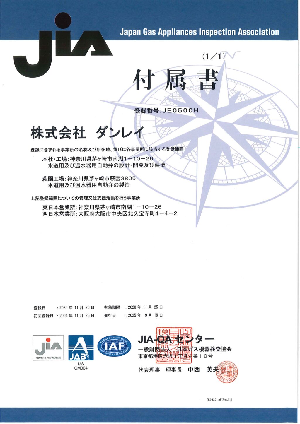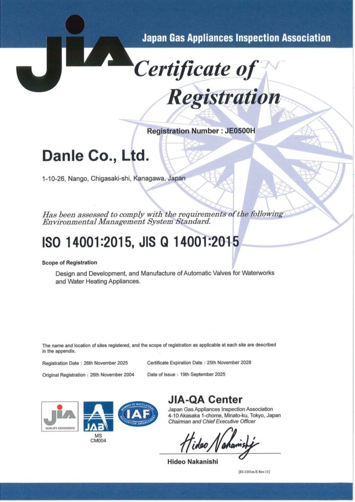 | 登録範囲 | 水道用及び温水器用自動弁の設計・開発及び製造 |