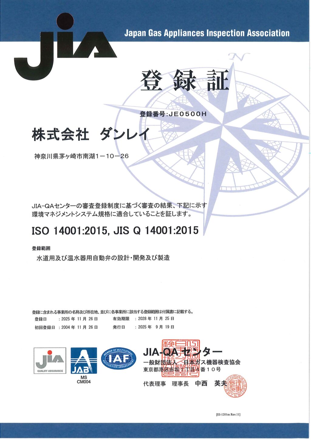 | 登録機関 | JIA-QAセンター |
