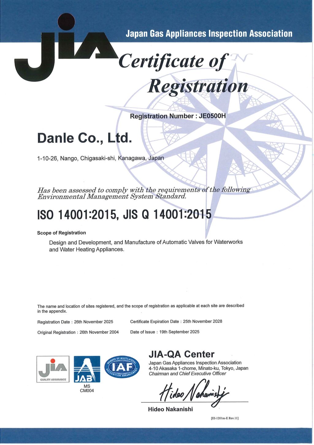 ISO 14001:2015,JIS Q 14001;2015 認証登録